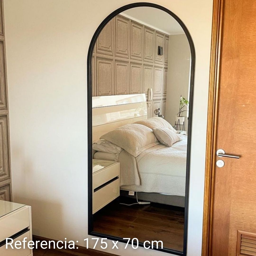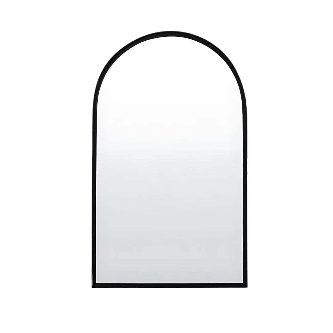 Un espejo elegante y versátil con diseño de arco y marco de fierro que aporta suavidad y estilo a cualquier ambiente.