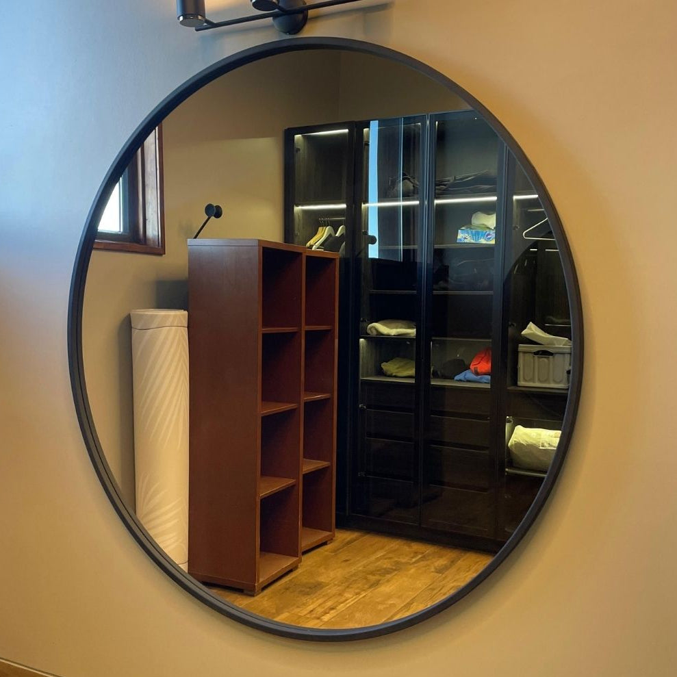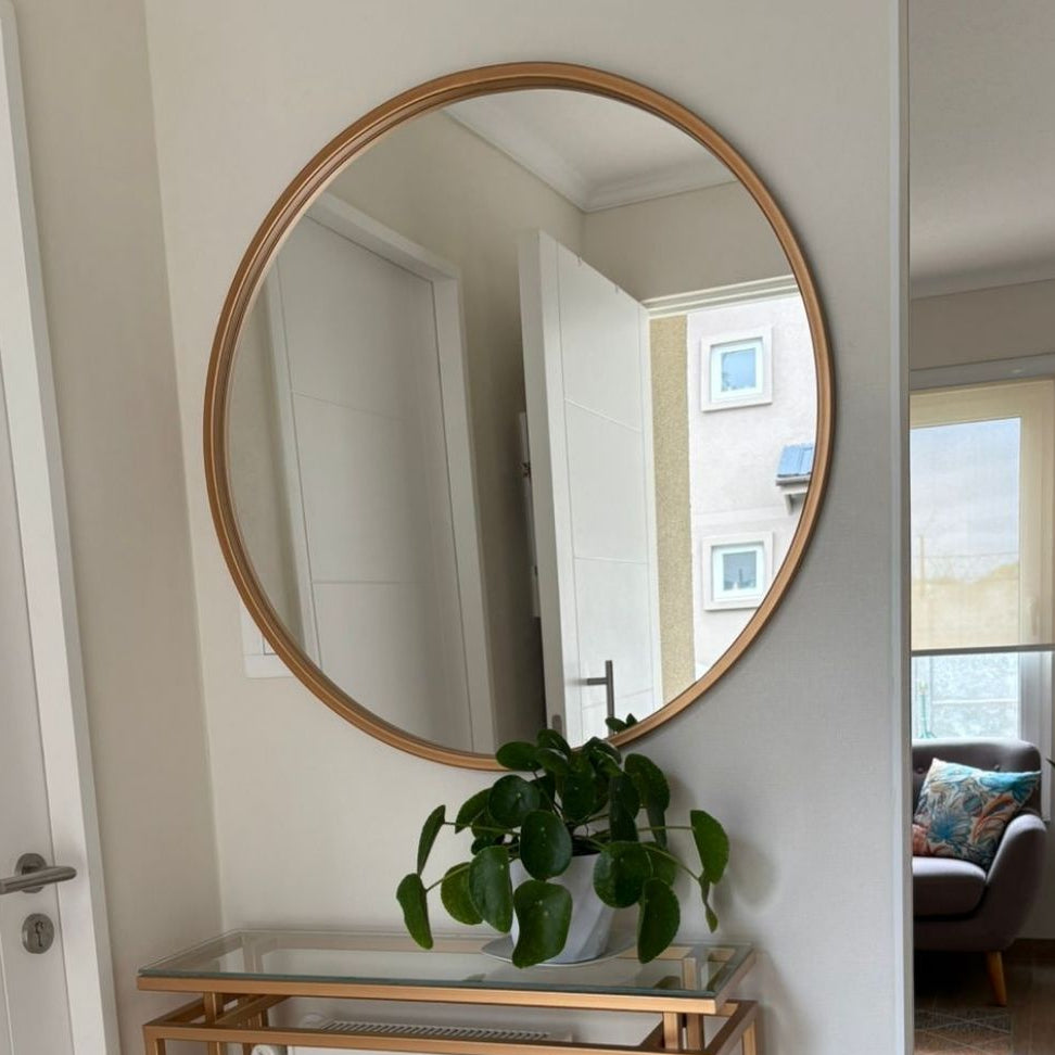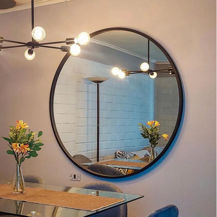 Este espejo redondo con marco de fierro es la elección ideal para añadir un toque de elegancia y equilibrio a cualquier espacio.