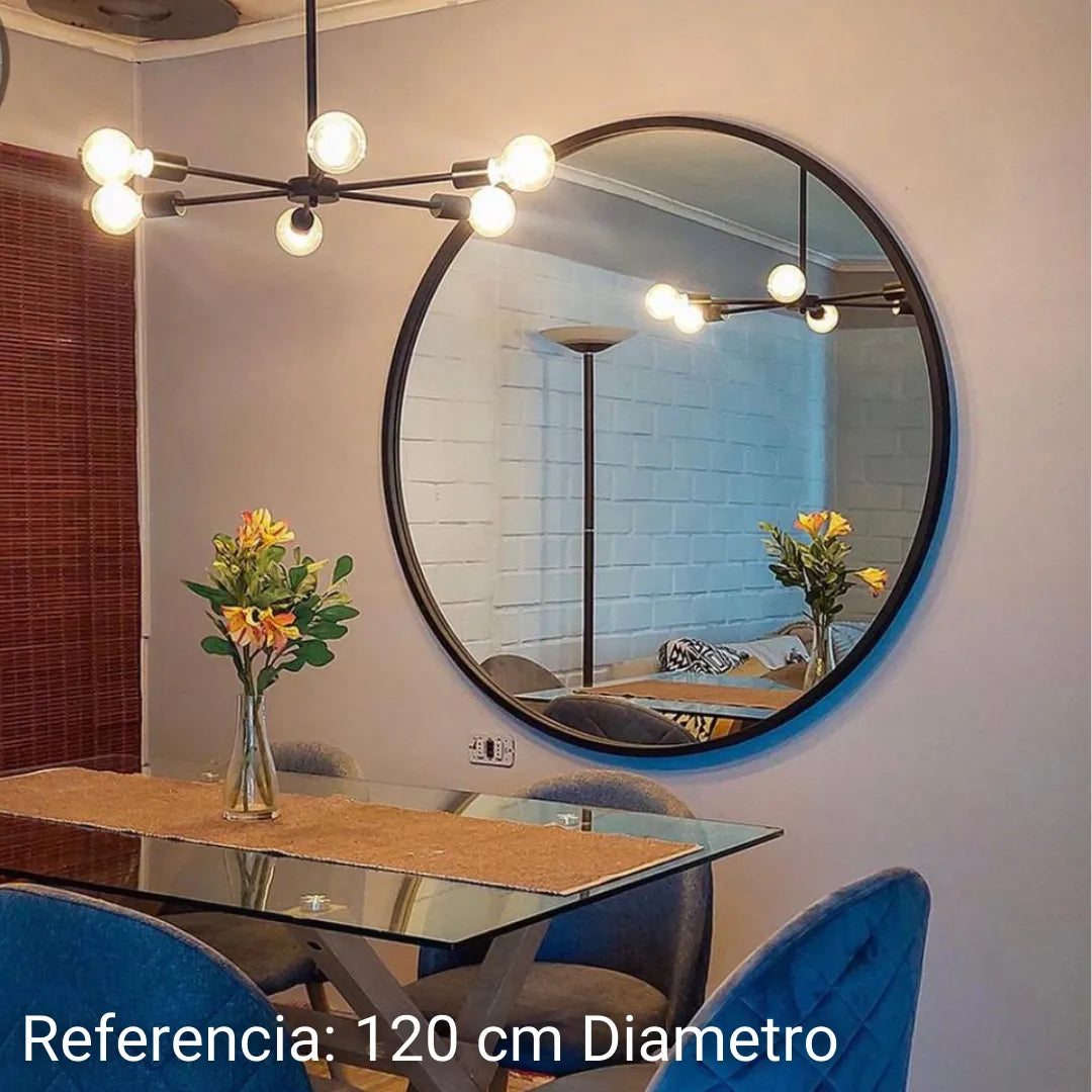 Su forma circular aporta suavidad y armonía visual, mientras que el marco de fierro le da un estilo moderno y sofisticado.